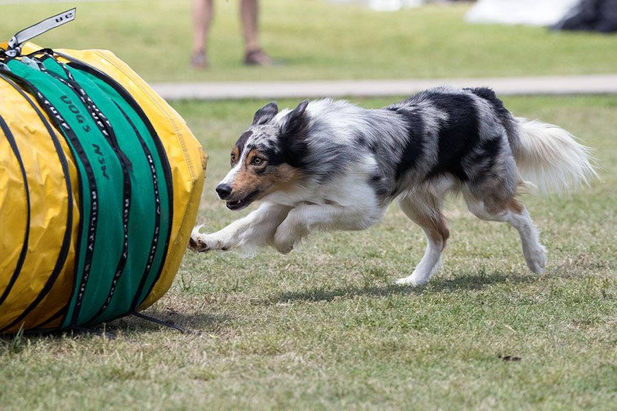 Spyro is a true all rounder- an athletic sports dog, amiable house dog, gentle therapy dog and even an actor for commercials! Spyro's gentle, loving and engaging nature shines in his volunteer therapy dog role, where he was selected to attend the high care dementia residences at our local nursing home. He is a wonderful sports dog, titled in working pack dog (endurance), lure coursing, and tricks, as well as obtaining his Herding Instinct Certificate. We also compete and train in dancing with dogs, rally, agility, and flyball. He has an excellent off-switch, sleeping the day away at home if nothing is asked of him, but the second his attention is required he is all in. He is a powerful dog, lean and muscular, with great tug drive and desire to please. He is solid in demanding environments, which has allowed him to perform in multiple commercials with new people, places, sounds, and large camera equipment.